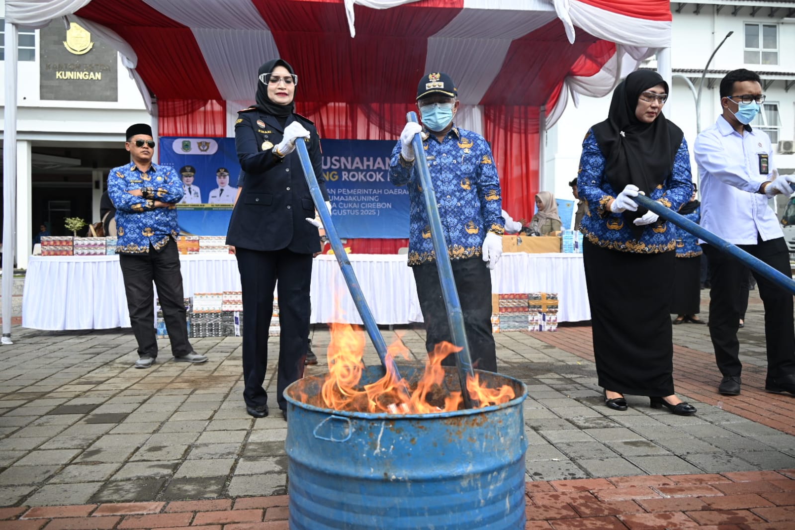 Acara ini dihadiri sekaligus melakukan simbolis pembakaran rokok ilegal, oleh Wakil Bupati Kuningan, Sekda, unsur Forum Koordinasi Pimpinan Daerah (Forkopimda) Kuningan, Kepala Kantor Wilayah DJBC Jawa Barat, Kepala Kantor Pelayanan Kekayaan Negara dan Lelang (KPKNL) Cirebon, Kepala Kantor Pelayanan Pajak (KPP) Pratama Kuningan, Kepala Badan Narkotika Nasional (BNN) Kuningan.