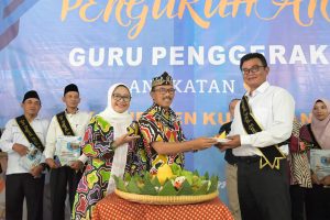 KUNINGAN-Wujud Komitmen Peningkatan Kualitas Pendidikan di Kabupaten Kuningan, sebanyak 133 Guru Penggerak yang telah mengikuti Diklat selama 9 bulan, dikukuhkan oleh Pj Bupati Kuningan Dr. Drs. H. R. Iip Hidajat, M.Pd. hadir juga Sekda Kuningan Dr. H. Dian Rachmat Yanuar, M.Si berlangsung di Aula SMKN 1 Kuningan, Sabtu 13 Juli 2024.