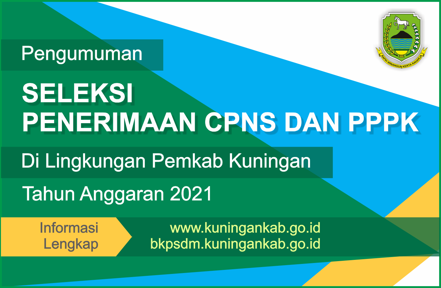 Pengumuman Seleksi Penerimaan CPNS dan PPPK di Lingkungan Pemerintah Kabupaten Kuningan Tahun Anggaran 2021, selengkapnya dapat dilihat di website resmi Badan Kepegawaian dan Sumber Daya Manusia (BKPSDM) Kabupaten Kuningan, di alamat https://bkpsdm.kuningankab.go.id/