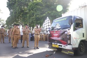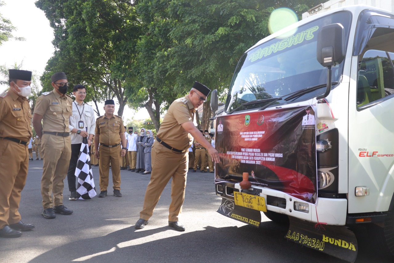 Peluncuran program tersebut, ditandai dengan pemecahan kendi oleh Bupati Kuningan H. Acep Purnama, SH., MH dan pelepasan kendaraan operasional pasar murah oleh Wakil Bupati Kuningan H. M. Ridho Suganda, SH., M. Si, usai pelaksanaan apel pagi, di Halaman Setda Kabupaten Kuningan, Senin (21/11/2022).