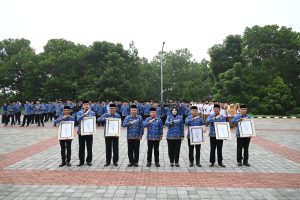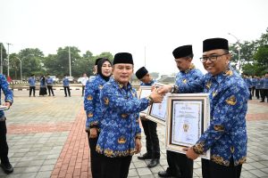Kuningan – Bupati Kuningan Dr. H. Dian Rachmat Yanuar, M.Si menjadi pembina Upacara Hari Kesadaran Nasional yang dirangkaikan dengan Penganugerahan Predikat Penilaian Pelaksana Reformasi Birokrasi Perangkat Daerah di lingkungan Pemerintah Daerah Kabupaten Kuningan tahun 2024 melalui aplikasi sistem pengukuran reformasi birokrasi terintegrasi (SURABI). Bertempat di Halaman Setda Kabupaten Kuningan Jl. Ir. Soekarno Komplek KIC, Senin (17/03/2025)