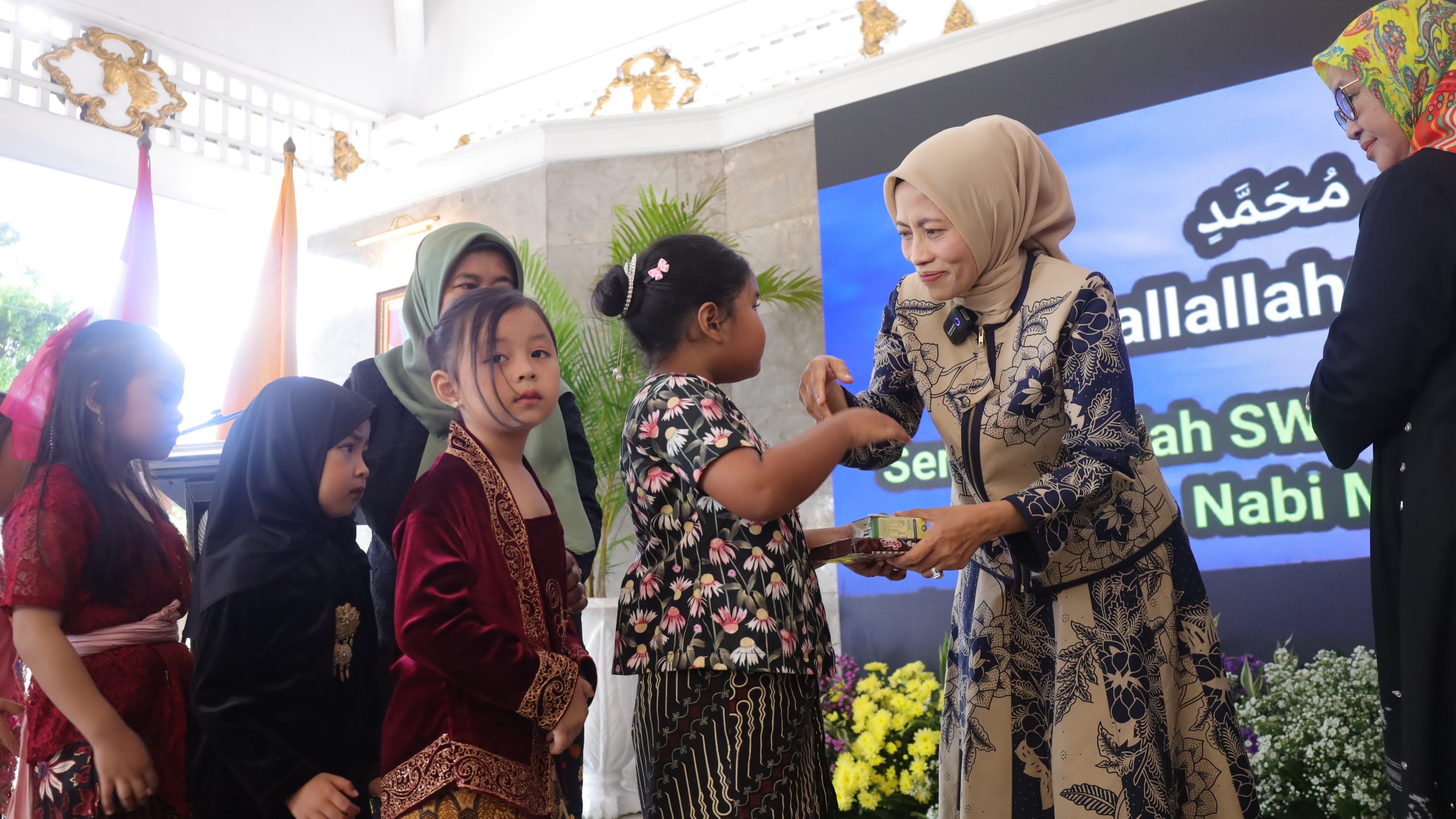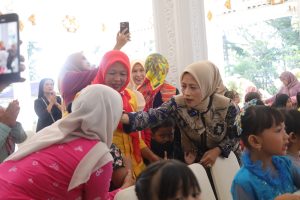 Kegiatan berlangsung dengan penuh keceriaan. Anak-anak tampak antusias mengikuti seluruh rangkaian acara, mulai dari sesi perkenalan, bernyayi bersama, termasuk saat pembagian susu dan snack dari Istri Bupati.