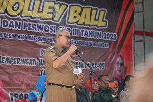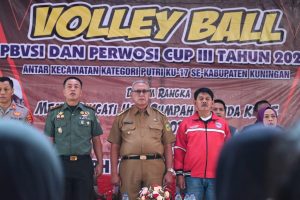 KUNINGAN – Dalam rangka memperingati hari sumpah pemuda ke-95 Persatuan Bola Voli Seluruh Indonesia (PBVSI) Kabupaten Kuningan menggelar turnamen Bola Volli  Putri PBVSI & PERWOSI CUP III 2023 Se-Kabupaten Kuningan untuk kelompok umur 17 tahun . Kegiatan tersubut dibuka oleh Bupati Kuningan H. Acep Purnama, SH., MH, bertempat di Gor Ewangga Selasa (24/10/2023).