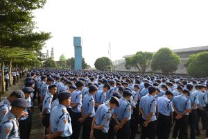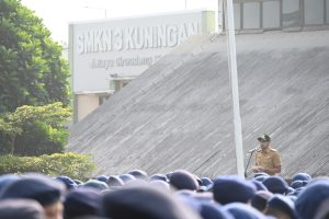 KUNINGAN,- Sebanyak 2.558 siswa SMK Negeri 3 Kuningan berdiri tegak dan berbaris rapih mengikuti upacara bendera di halaman upacara SMK Negeri 3 Kuningan, pada hari Senin (20/03/2023), yang pada kesempatan kali ini dipimpin langsung oleh Wakil Bupati Kuningan H. M Ridho Suganda, SH., M.Si, dalam rangka mempererat ikatan silaturahmi dan sinergitas Pemerintah Daerah dengan sekolah di wilayah Kabupaten Kuningan.