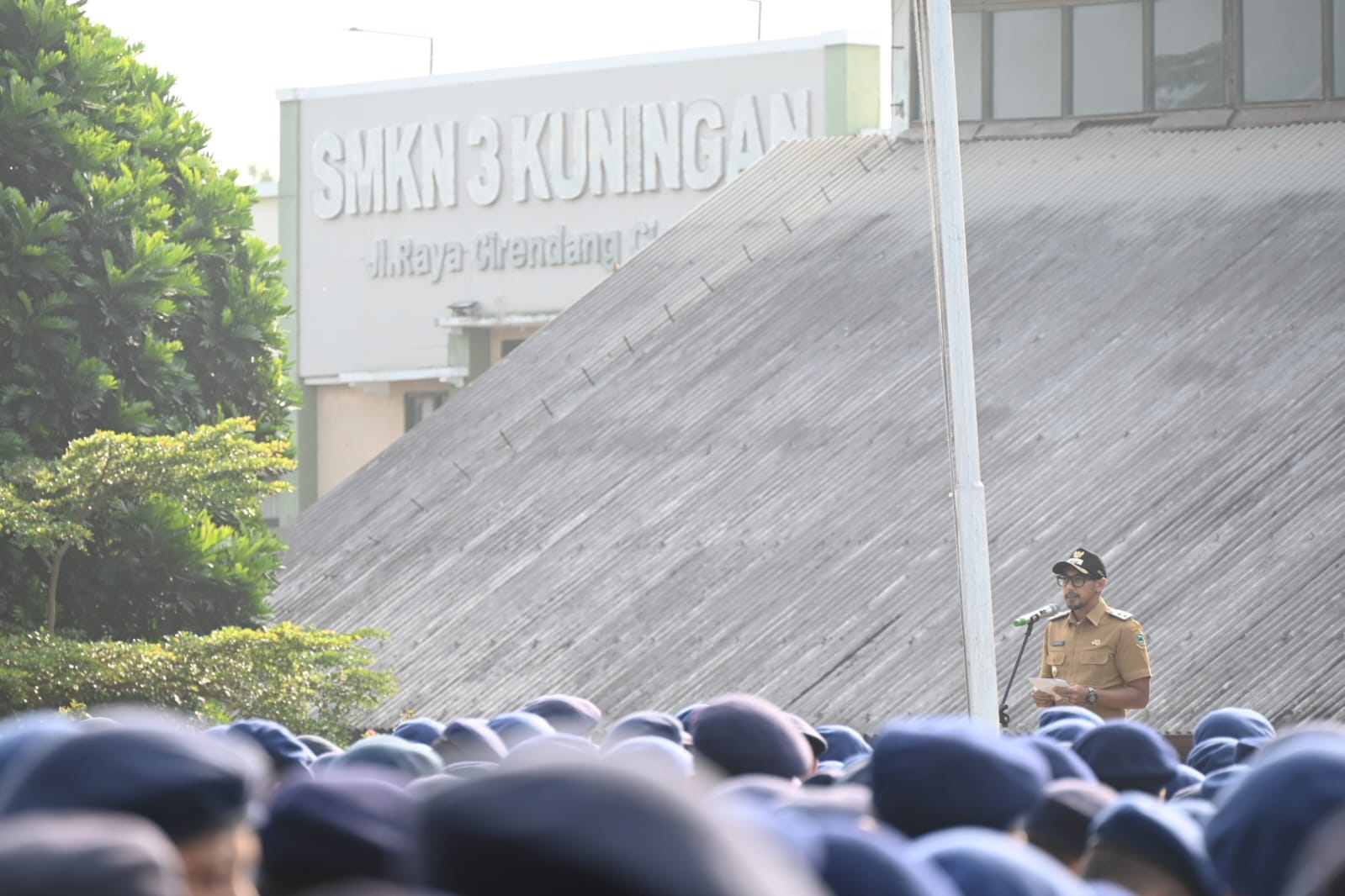 Hadir pada upacara bendera tersebut, Kepala SMK negeri 3 Kuningan Drs. Lili Ramli, M.Kom., beserta jajaran Wakil Kepala Sekolah, Kepala Program Studi Kejuruan, Para Staff Guru dan Staff Tata Usaha, dan juga Para Siswa dan siswi SMK negeri 3 Kuningan.