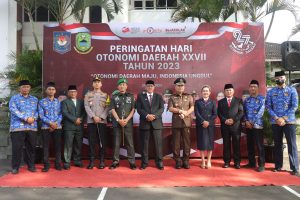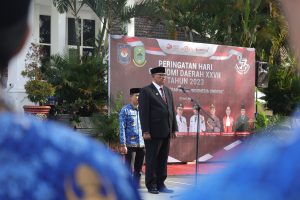 KUNINGAN- Pemerintah Kabupaten Kuningan, menggelar upacara peringatan Hari Otonomi Daerah (Otda) ke-27 Tahun 2023, dengan tema “Otonomi Daerah Maju, Indonesia Unggul” di halaman Kantor Sekretariat Daerah Kabupaten Kuningan, Jumat (28/4/2023).