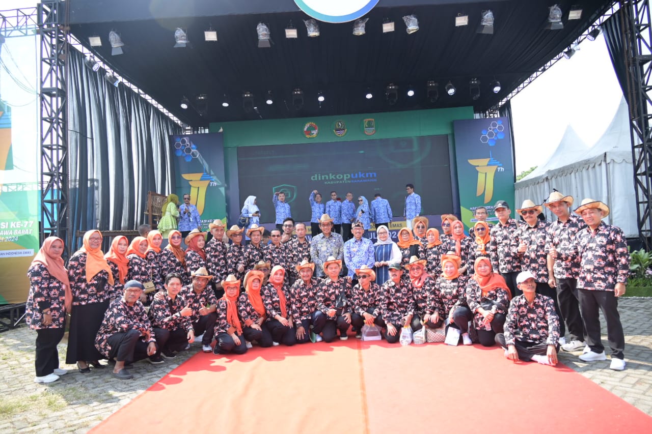 KARAWANG – Penjabat Bupati Kuningan, Dr Drs H Raden Iip Hidajat, Mpd menghadiri Peringatan Hari Koperasi Ke-77 Tingkat Provinsi Jawa Barat sekaligus Gelar Produk Koperasi di Lapangan Street Carnival Galuh Mas, Kabupaten Karawang, Jumat (12/07/2024).