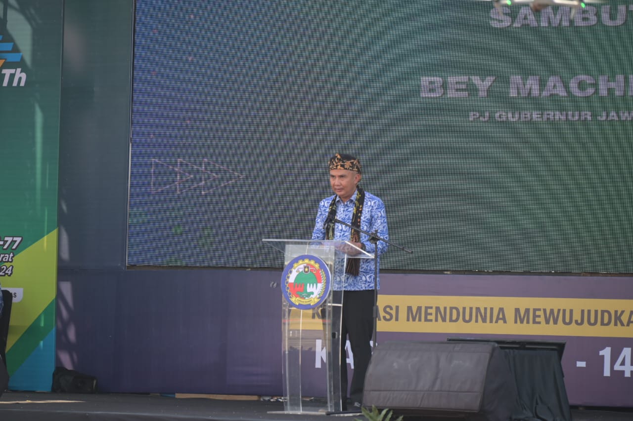 Dalam sambutannya, Penjabat Gubernur Jawa Barat, Bey Machmudin mengatakan, peringatan ini merefleksikan peran koperasi semakin strategis untuk mempercepat ikhtiar bangsa keluar dari middle income trap.