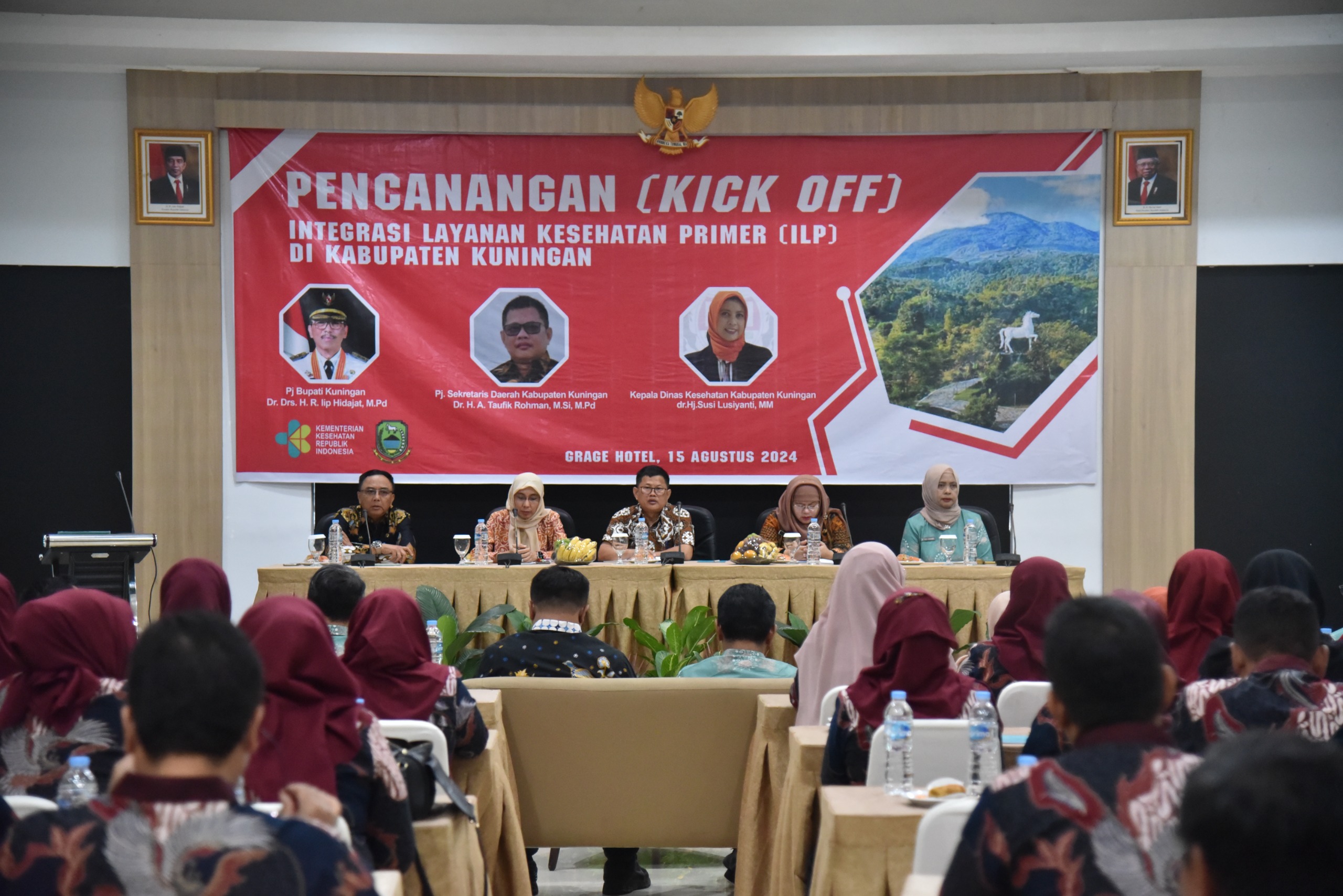 KUNINGAN – Pj Sekda Kab. Kuningan Dr. H. A. Taufik Rohman, M.Si., M.Pd hadiri acara integrasi layanan kesehatan primer (ILP) Kabupaten Kuningan, yang dilangsungkan di Aula Hotel Grage Sangkan pada kamis, (15/08/2024)