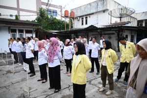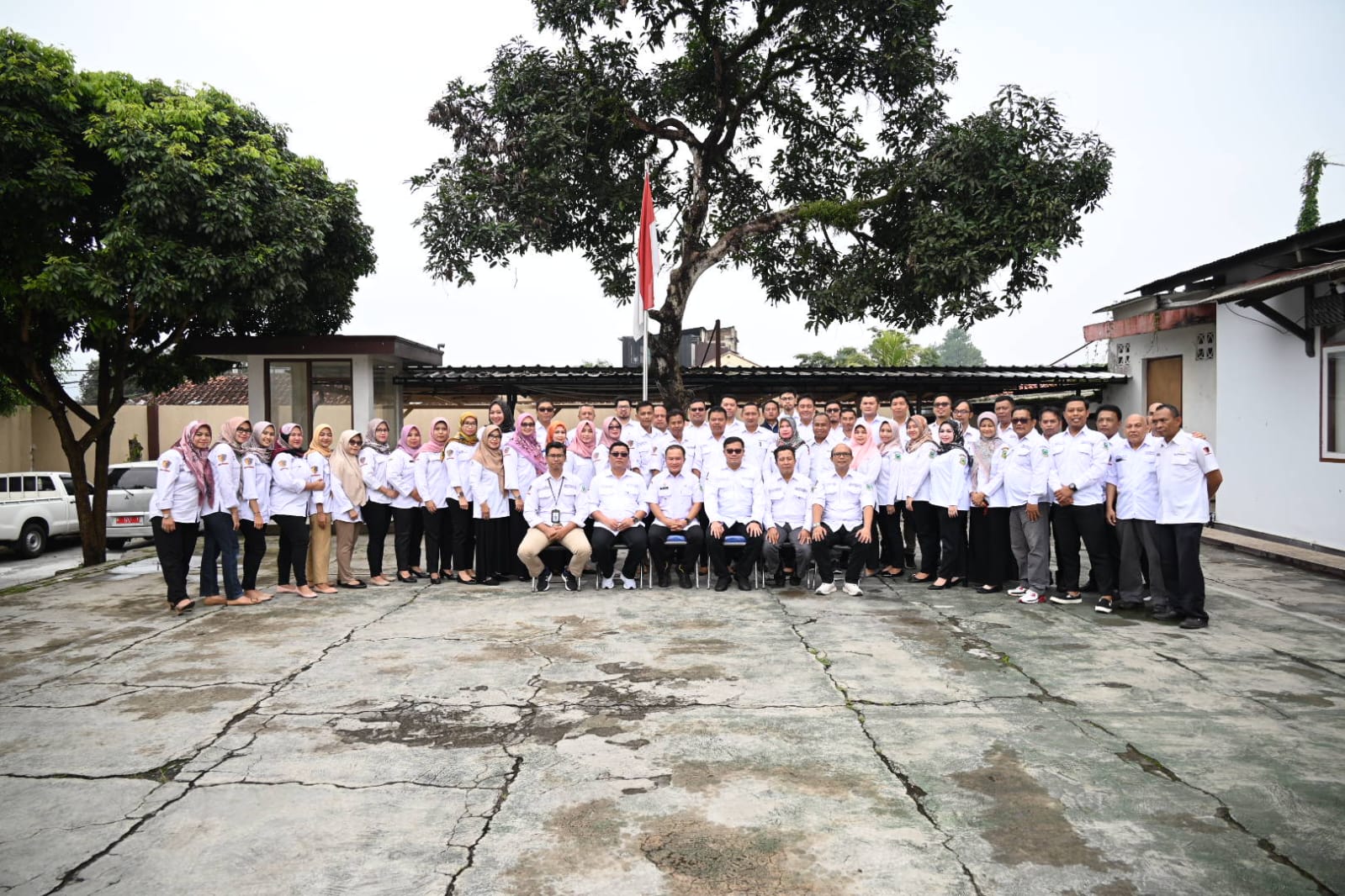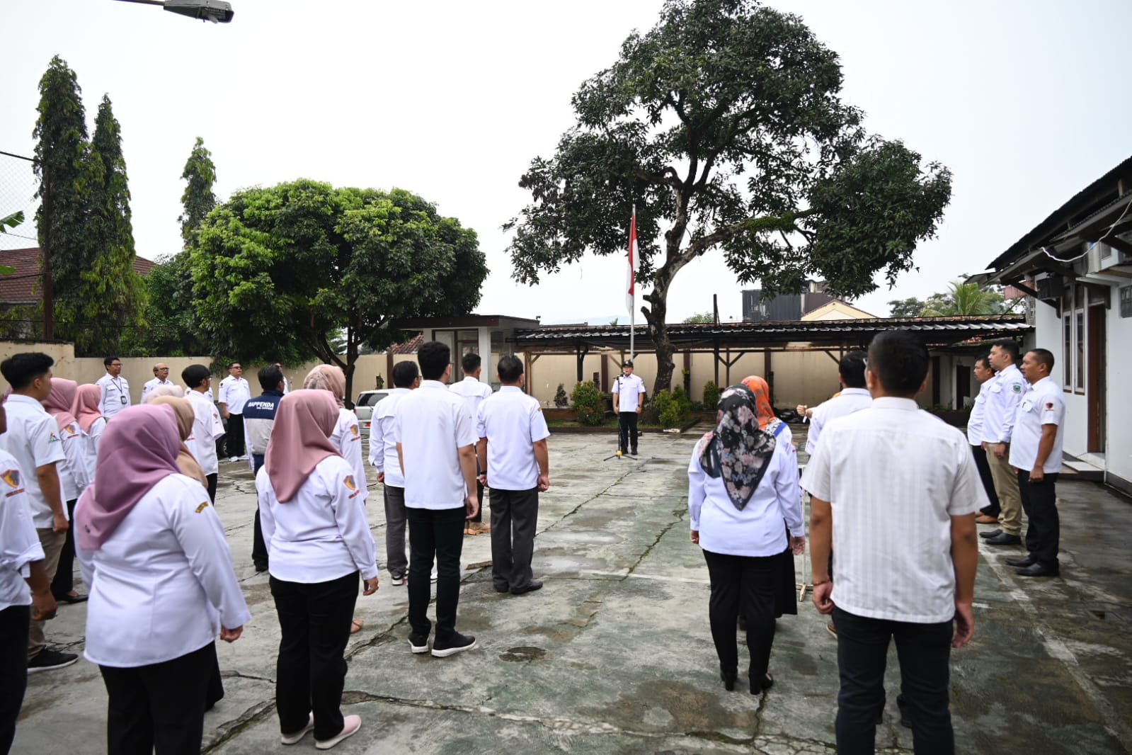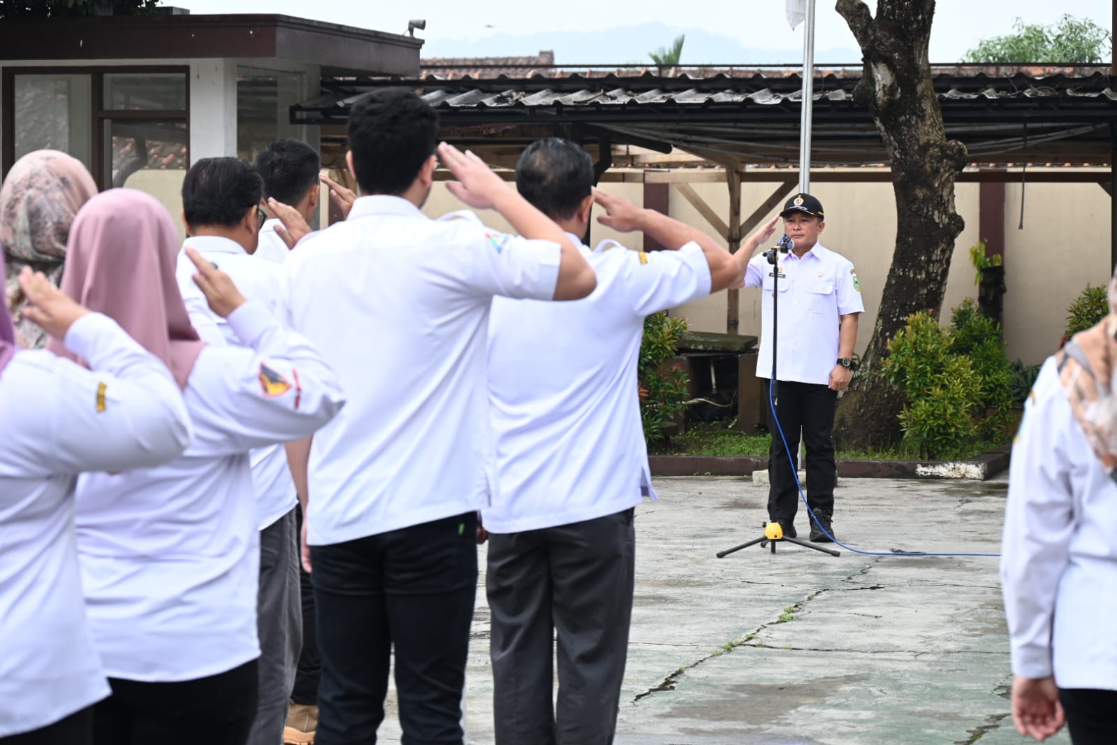 Kuningan – Mengawali bulan Februari Sekretaris Daerah Kabupaten Kuningan Dr. H. Dian Rachmat Yanuar, M.Si pimpin apel pagi di Badan Pengelolaan Pendapatan Daerah Kabupaten Kuningan, Rabu (01/02/2023). Apel tersebut di ikuti oleh Kabapenda Guruh Irawan Z, S.Stp M.Si, Sekban Didin, para kabid, para pejabat struktural, fungsional serta para staf Bapenda.