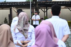 Dalam arahannya, Sekda mengucapkan terima kasih pada seluruh pegawai yang telah secara konsisten mengikuti apel pagi ini sebagai cek kesiapan kekuatan sebelum melakasanakan pekrerjaan.