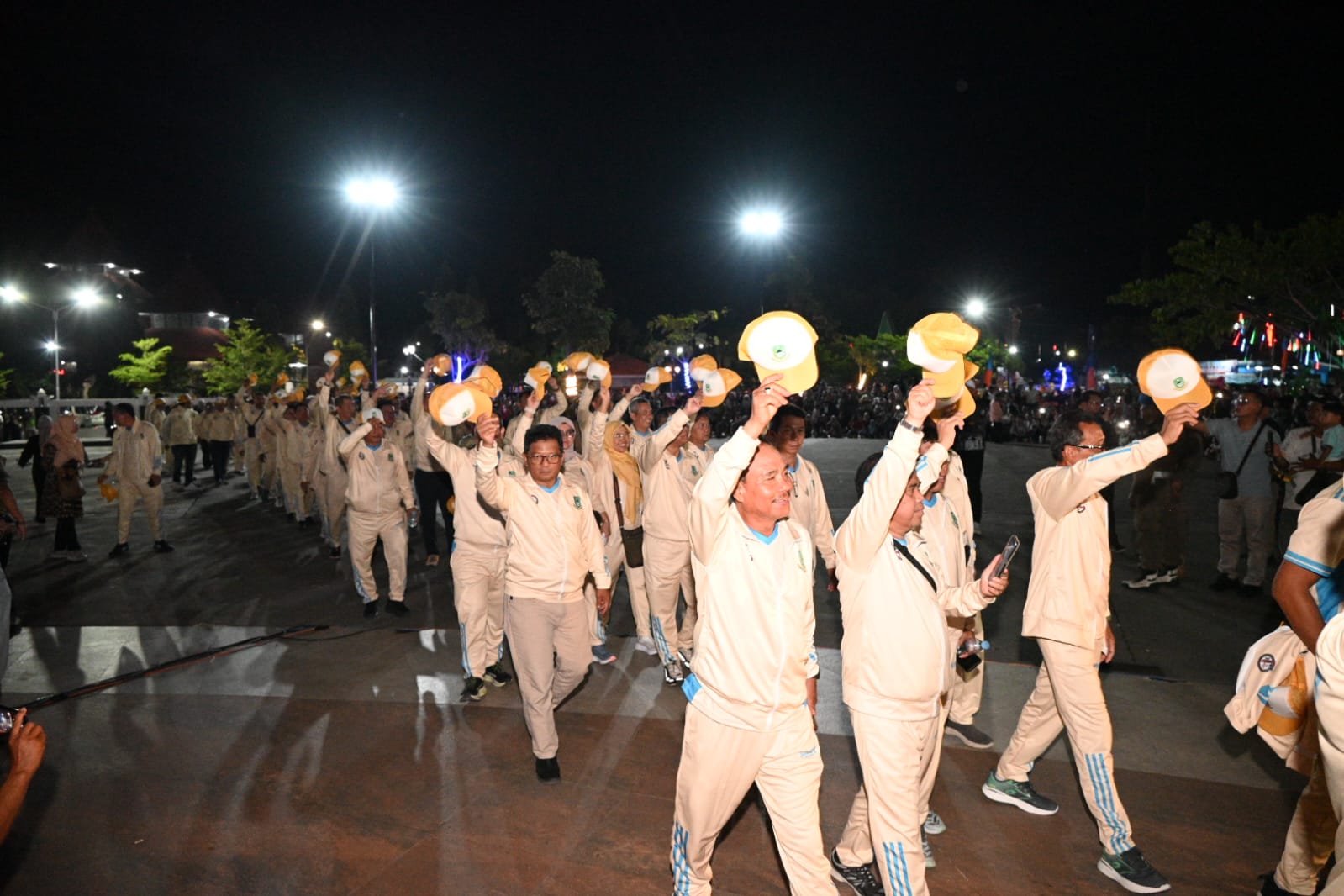 INDRAMAYU – Pekan Olahraga, Seni, dan Kreativitas (Porsenitas) Kunci Bersama ke-XII, Kabupaten Indramayu menjadi tuan rumah. Pembukaan berlangsung di Alun-alun Indramayu, diawali dengan defile kontingen dari 10 kabupaten/kota anggota Kunci Bersama.Selasa (7/10/2025) malam.