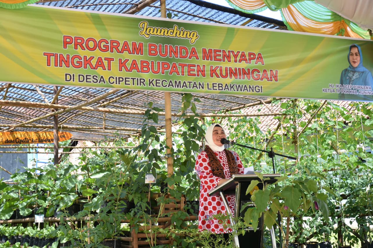 Hal yang sama dijelaskan Ketua Tim Penggerak PKK Kab. Kuningan, kami sangat memberikan dukungan untuk bermitra dalam mensukseskan Program Bunda Menyapa yang memiliki tujuan utamanya untuk memperkuat ketahanan pangan keluarga, meningkatkan produktifitas ekonomi masyarakat dan memberi warna pada pembangunan daerah di Kabupaten Kuningan dengan penerapan azas konservasi.