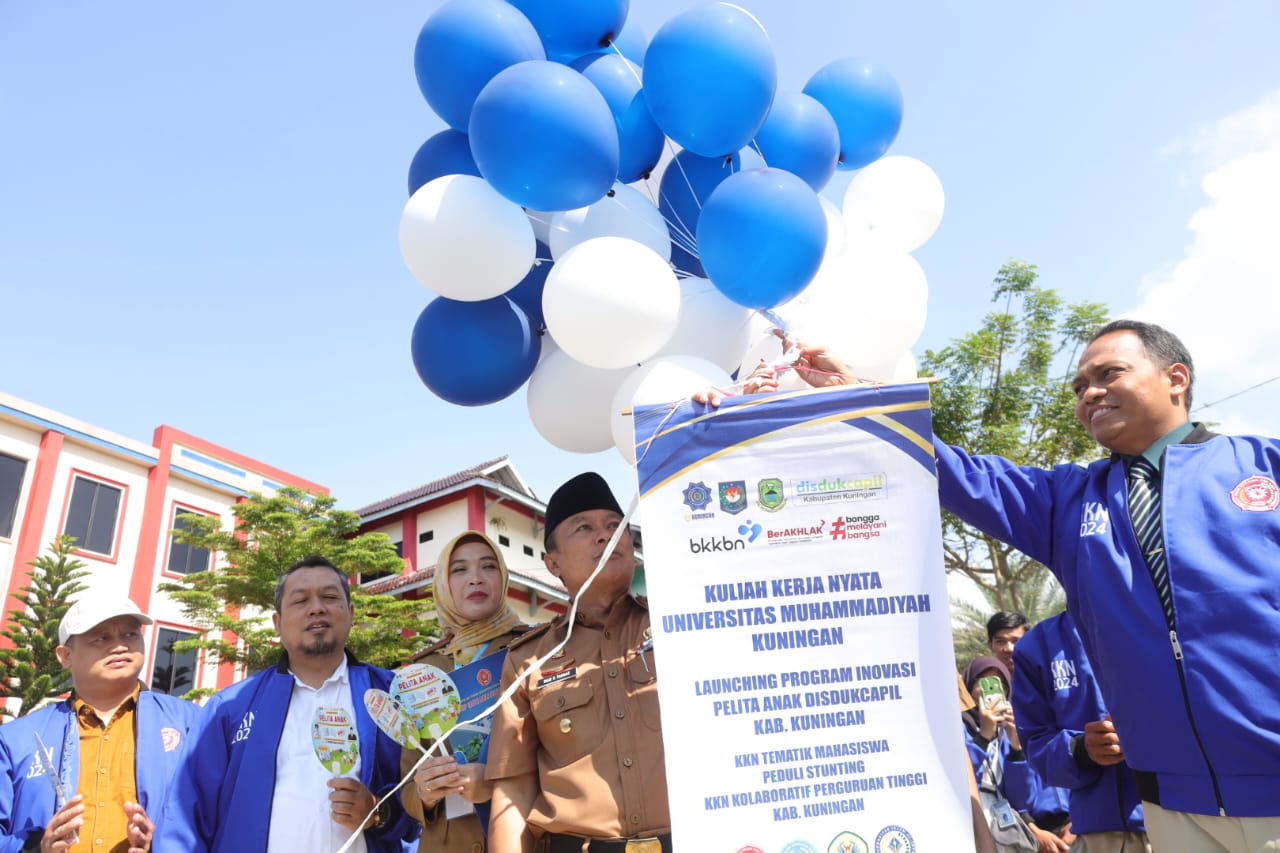 Program Inovasi PELITA ANAK di launching bersamaan dengan dilaksanakannya Pembukaan dan Peluncuran Kegiatan Kuliah Kerja Nyata (KKN) STKIP Muhammadiyah Kuningan Tahun 2024 sekaligus sosialisasi bagai mahasiswa, berlangsung di lapangan olahraga perguruan tinggi tersebut, Senin (15/7/ 2024).