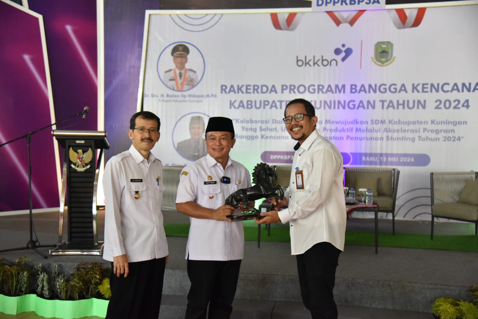 Hadir pada kegiatan ini, Kepala Perwakilan BKKBN Jabar Fazar Supriadi Sentosa, SH, Kepala DPPKB3A Drs. H. Uca Somantri, M.Si, Kadinkes Kuningan dr. Hj. Susi Lusiyanti, MM dan undangan lainnya.  (IKP/DISKOMINFO/PROKOMPIM).