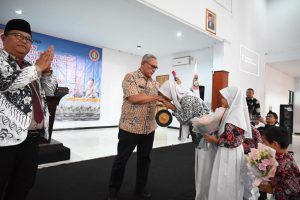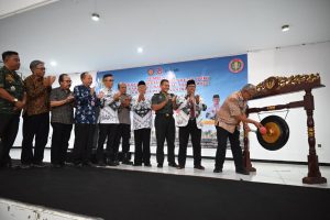 Kemudian Bupati Acep didampingi oleh undangan yang hadir, memukul gong sebagai simbolis rangkaian HUT PGRI ke 78 di mulai.