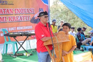 KUNINGAN,- Bupati Kuningan H. Acep Purnama, SH., MH. meresmikan objek wisata Bukit dan arung jeram Moncongos di Desa Sukaimut, Kecamatan Garawangi, Minggu (18/9/2022).