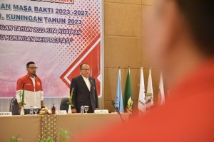 KUNINGAN – H. M. Ridho Suganda, SH., M.Si. resmi dilantik sebagai Ketua Komite Olahraga Nasional Indonesia (KONI) Kabupaten Kuningan masa bakti 2023-2027. Hal itu nampak pada agenda Pelantikan dan Pengukuhan Pengurus KONI Kabupaten Kuningan masa bakti 2023 – 2027 dan Rapat Kerja KONI Kabupaten Kuningan tahun 2023, dengan tema “Melalui Raker KONI Kabupaten Kuningan Tahun 2023 Kita Kuatkan Kapasitas Organisasi Menuju Kuningan Berprestasi”. Bertempat di Hotel Horison Tirta Sanita Kuningan. Kamis (10/8/2023).