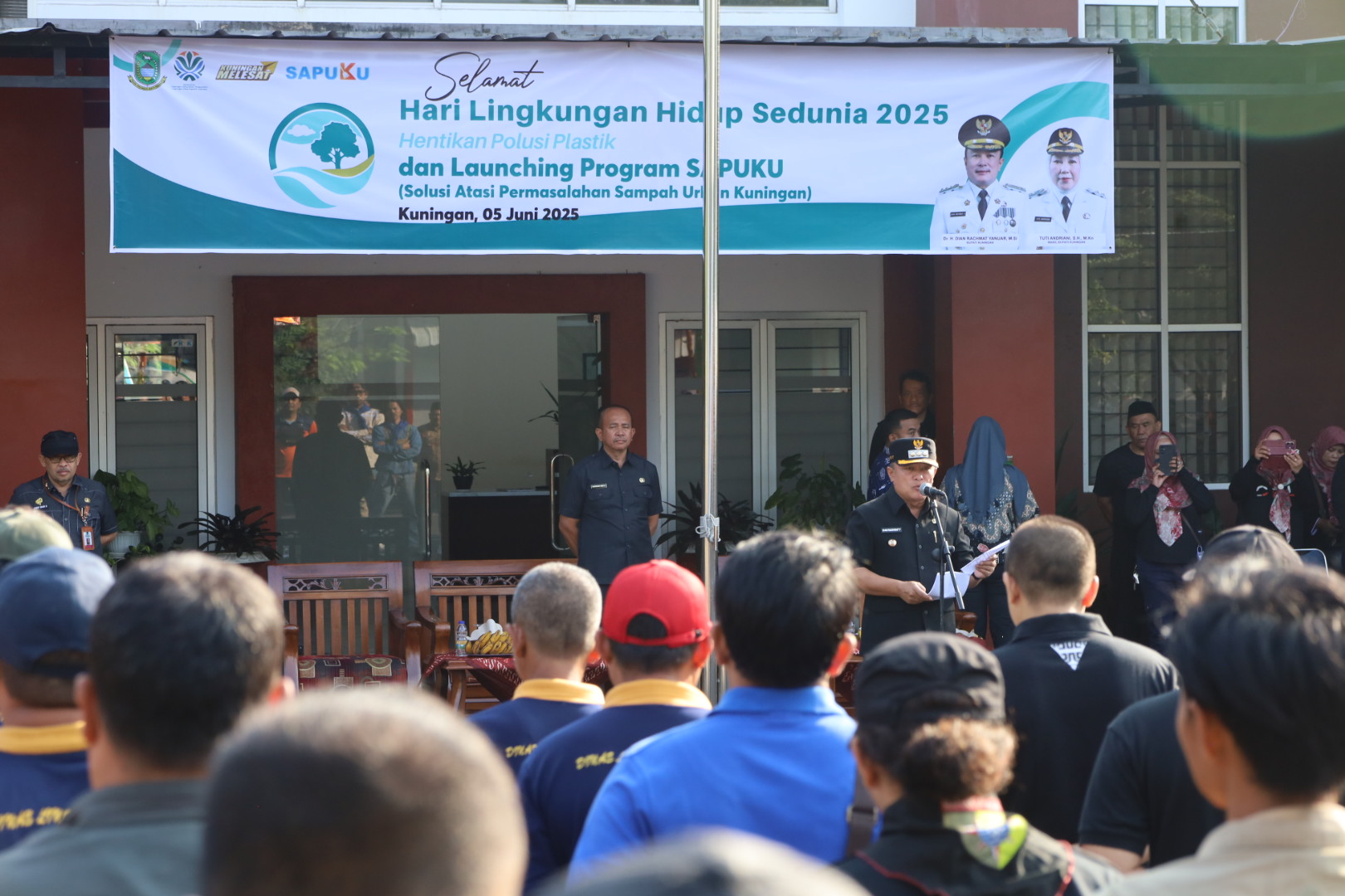 Acara yang digelar di halaman Kantor Dinas Lingkungan Hidup itu dirangkaikan dengan peluncuran program SAPUKU (Solusi Atasi Masalah Sampah Urban Kuningan), salah satu dari program unggulan dalam 100 hari kerja Bupati.