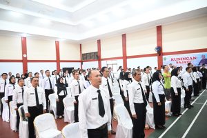 “Silakan kepada para pegawai untuk menunjukan kemampuan dimapaun bertugas dan harus memiliki nilai -nilai kompetensi yang baik untuk selalu dikembangkan serta selalu menciptakan sikap harmonis di lingkungan pekerjaan”, ungkapnya.