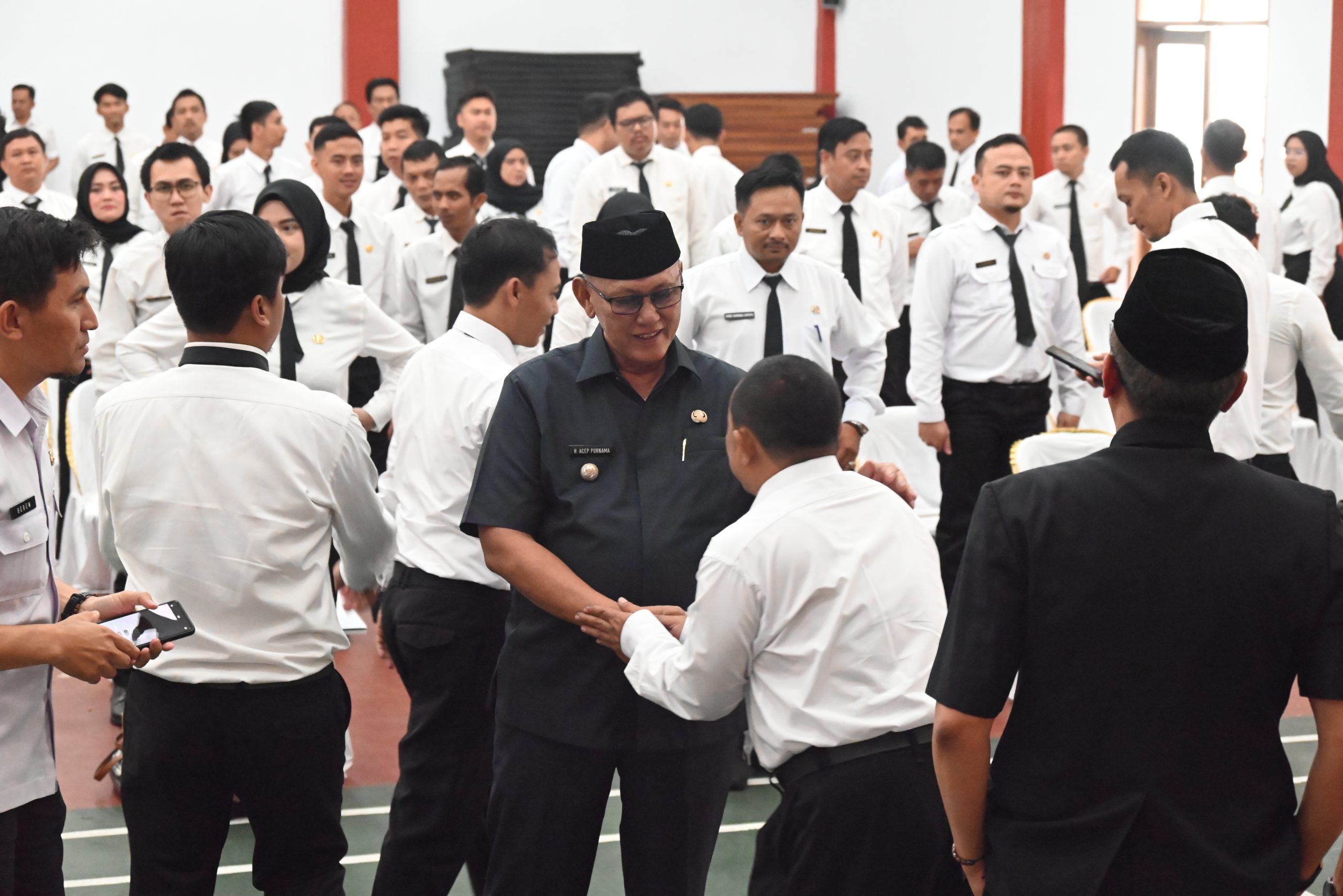 Lebih lanjut menurutnya jadikan hari pelantikan ini hari paling bersyukur untuk mengabdikan diri kita kepada bangsa dan negara, dimanapun saudara bertugas tunjukan selalu loyalitas dan integritas dalam bekerja, dan apabila para pegawai memiliki kemampuan lebih saya titip untuk dapat berbagai kemampuan dengan pegawai lainnya serta bekerjasama dalam menyelesaikan berbagai persoalan.