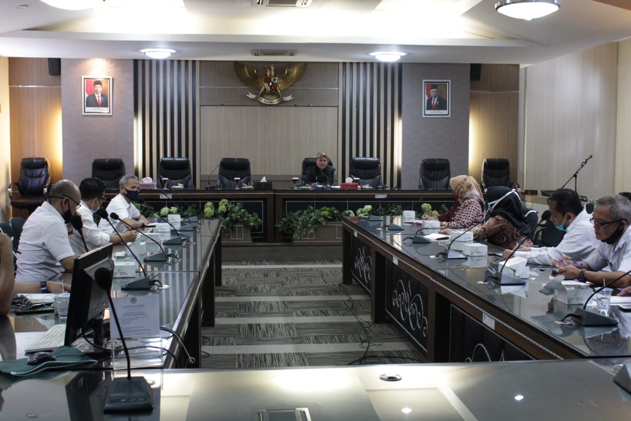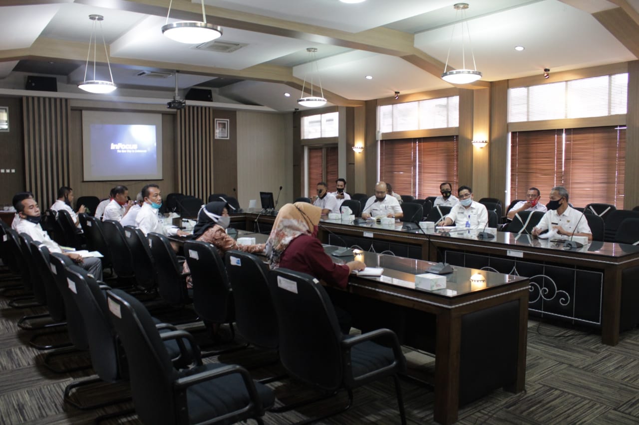 Sekretaris Daerah Kabupaten Kuningan Dr. Dian Rachmat Yanuar, M.Si. memimpin rapat koordinasi Pengelolaan Sampah di Ruang Rapat Linggajati, Pendopo, Rabu (19/08/2020). Rapat ini dihadiri oleh Asisten Daerah Dua, para perwakilan SKPD, Inisiator, Kepala Dinas Lingkungan Hidup, Kepala Dinas PUPR, Kepala Disdikbud, SATPOL PP, Forum Camat, Ketua Paguyuban Lurah Kuningan, Ketua Tim Penggerak PKK, Direktur Bank Sampah Sampah Induk Kalifah, Ketua Forum SBR, dan DPMD yang diwakili.