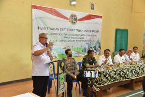 “Semua masyarakat yang punya bidang tanah harus memiliki sertifikat atas hak bidang tanah yang dimilikinya, sebagai bukti legalitas kepemilikan,” ujarnya.