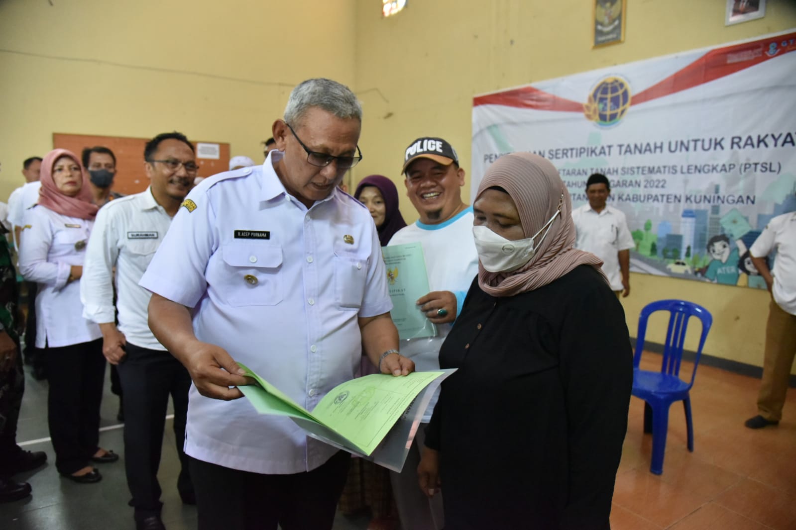 Bupati Acep berharap masyarakat Kabupaten Kuningan yang memiliki bidang tanah untuk segera mungkin memiliki sertifikat sebagai legalitas.