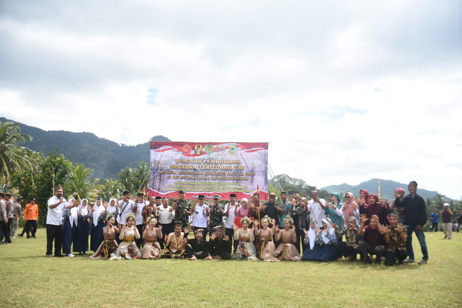 KUNINGAN – Komando Resort Militer 063/Sunan Gunung Jati menggelar kegiatan Serbuan Teritorial TNI di wilayah Komando Distrik Militer 0615 Kuningan, Rabu (27/08/2025). Romobongan Korem 063/SGJ diterima Oleh Bupati Kuningan, Dr. H. Dian Rachmat Yanuar, Msi dan Dandim 0615 Kuningan, Letkol Arh Kiki Aji Wiryawan, S.Sos bertempat di Balai Desa Tundagan, Kecamatan Hantara.