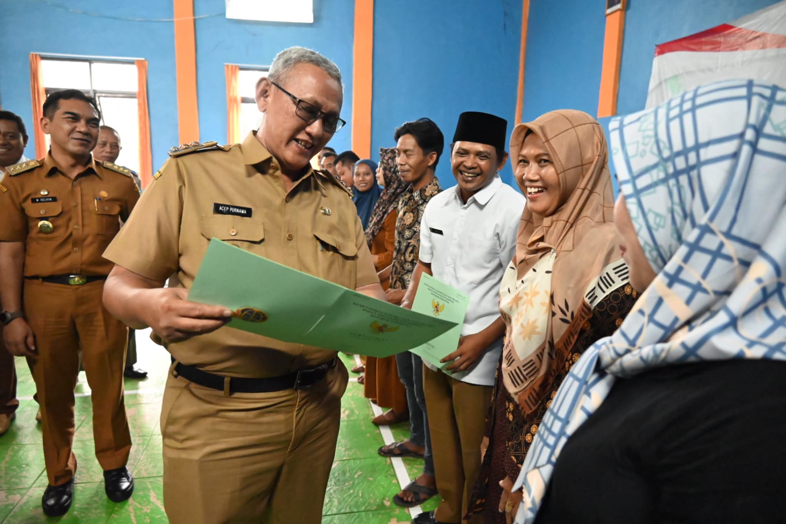 Ia pun mengajak masyarakat untuk bersyukur, karena mereka bisa mendapatkan sertifikat dengan biaya murah dibandingkan mengurus sendiri atau reguler”, ungkap Bupati Acep.