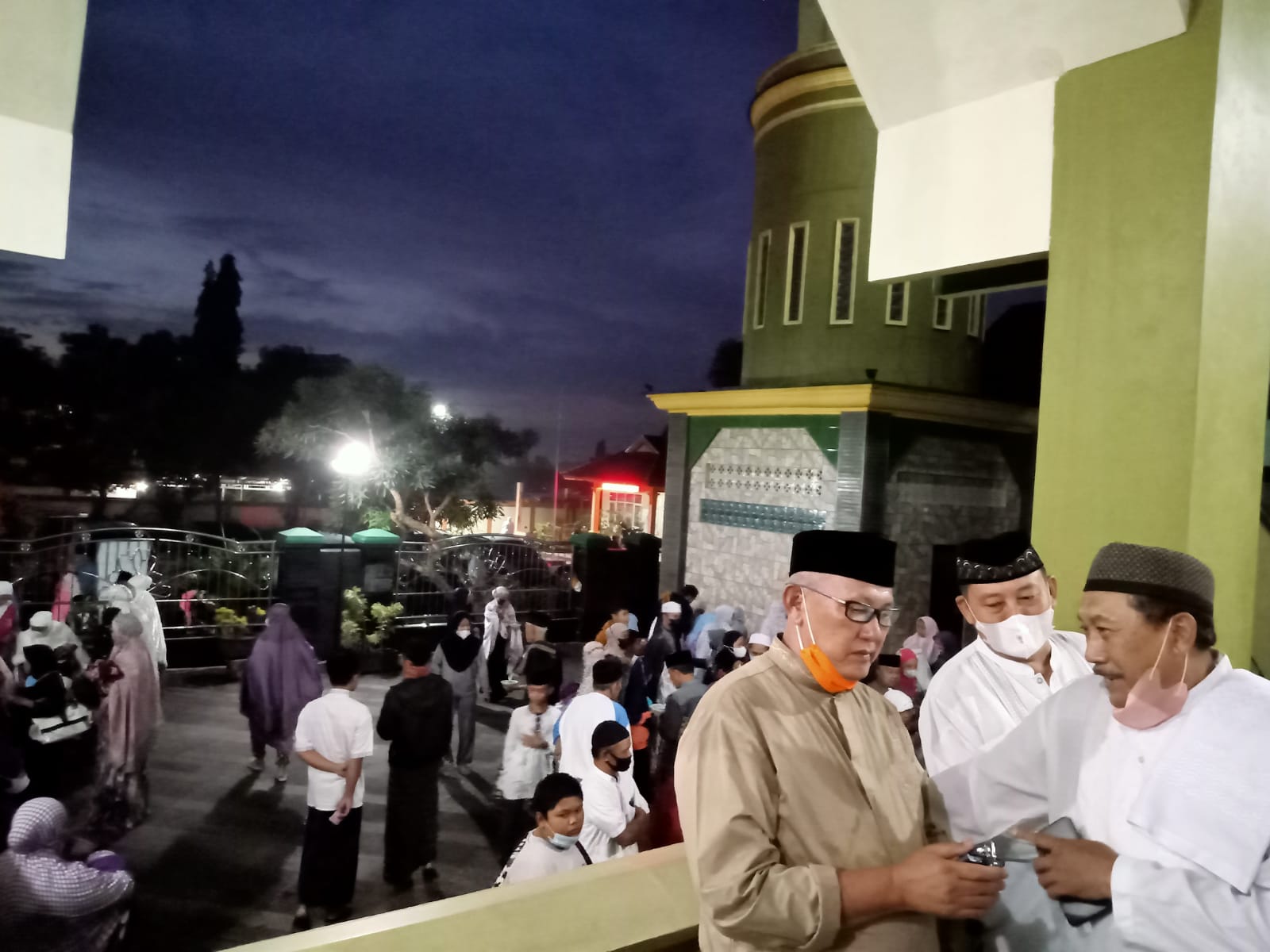 KUNINGAN-Ada nuansa lain di Masjid Al-Falah Kelurahan Cijoho, Kecamatan Kuningan. Ketika Suara Adzan berkumandang warga berbondong-bondong datang ke Masjid untuk menunaikan Shalat Subuh. Minggu (12/3/2022). Kejadian ini berlangsung tiap hari Minggu, sehingga terasa seperti Hari Raya Idul Fitri.
