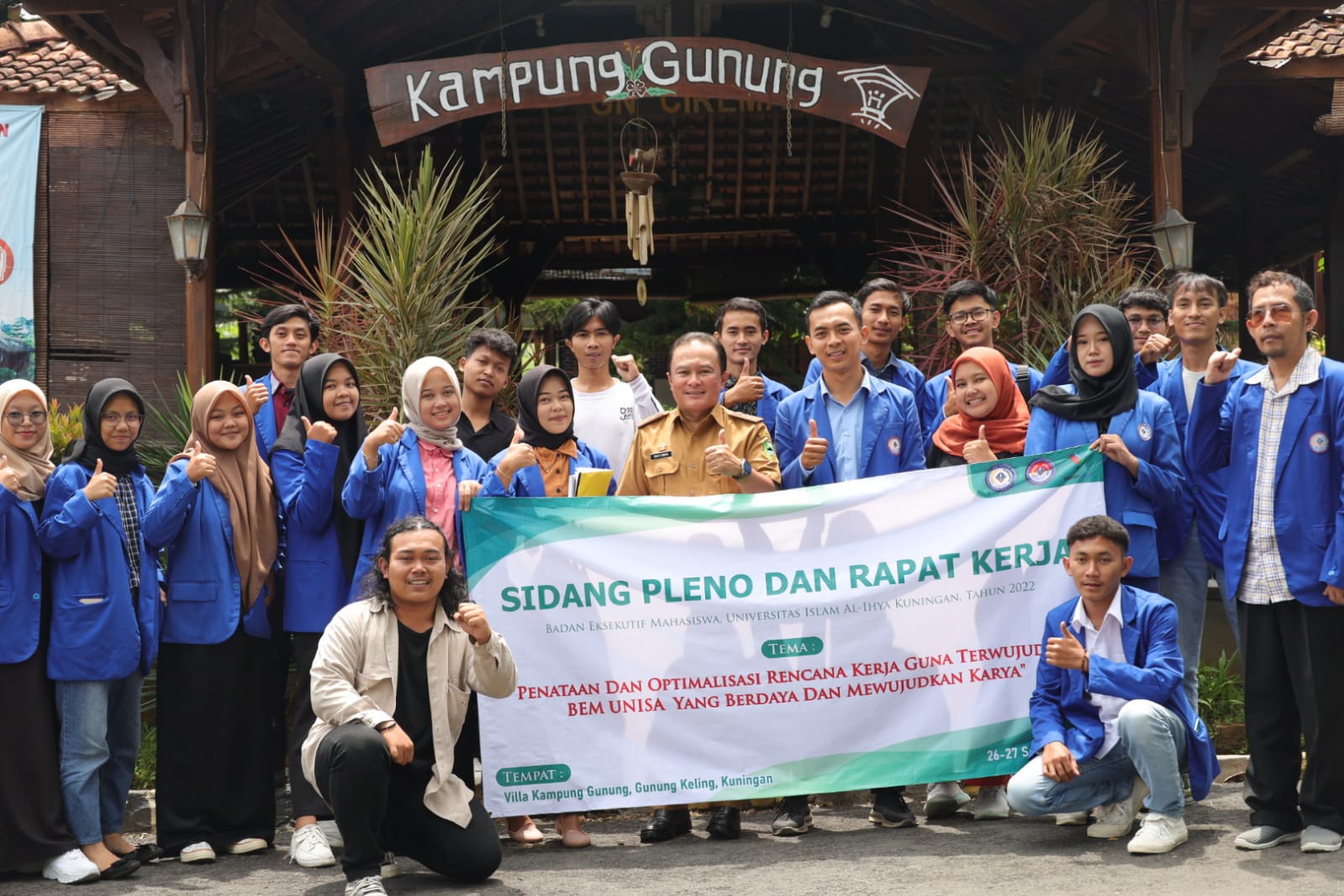 KUNINGAN,- Sekretaris Daerah (Sekda) Kabupaten Kuningan, Dr. Dian Rachmat Yanuar, M.Si memberikan arahan dan materi pada kegiatan Sidang Pleno dan Rapat kerja Badan Eksekutif Mahasiswa Universitas Islam Al-Ihya Kuningan dengan Tema “Penataan dan Optimalisasi Rencana Kerja Guna terwujudnya BEM Unisa yang Berdaya dan Mewujudkan Karya” bertempat di Villa Kampung Gunung, Pesona Alam, Cipari, Kuningan, Senin (25/9/2022).