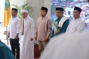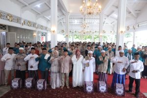 KUNINGAN – Mahalul qiyam yang berisi pujian kepada Nabi Muhammad SAW menggema di Teras Pendopo Kuningan dalam acara silaturahmi ulama dan umaro, Minggu (23/3/2025).
