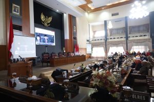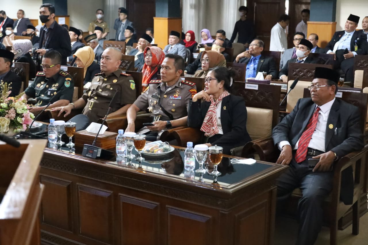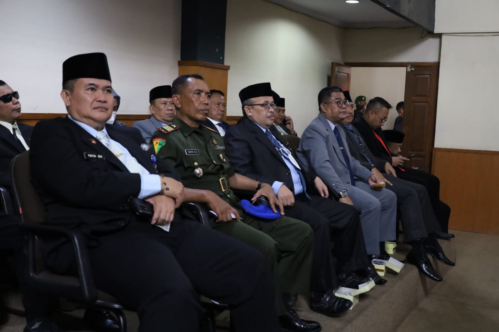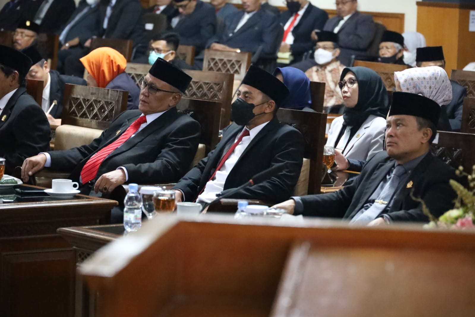 KUNINGAN,- Bupati Kuningan H. Acep Purnama, SH., MH. menyimak secara streaming melalui Kanal Sekretariat Presiden RI, Sidang Tahunan MPR RI dan Sidang Bersama DPR RI dan DPD RI dalam rangka HUT Ke-77 Proklamasi Kemerdekaan RI bersama Wakil Bupati Kuningan M. Ridho Suganda, S.H., M.Si., Sekda Kuningan, Dr. Dian Rachmat Yanuar, M.Si, Para Asisten Daerah, Staf Ahli Bupati, Para kepala OPD, ketua TP PKK beserta jajaran, Ketua DWP beserta jajaran dan Tamu Lainnya. Kegiatan ini dilaksanakan di Gedung DPRD Kabupaten Kuningan.