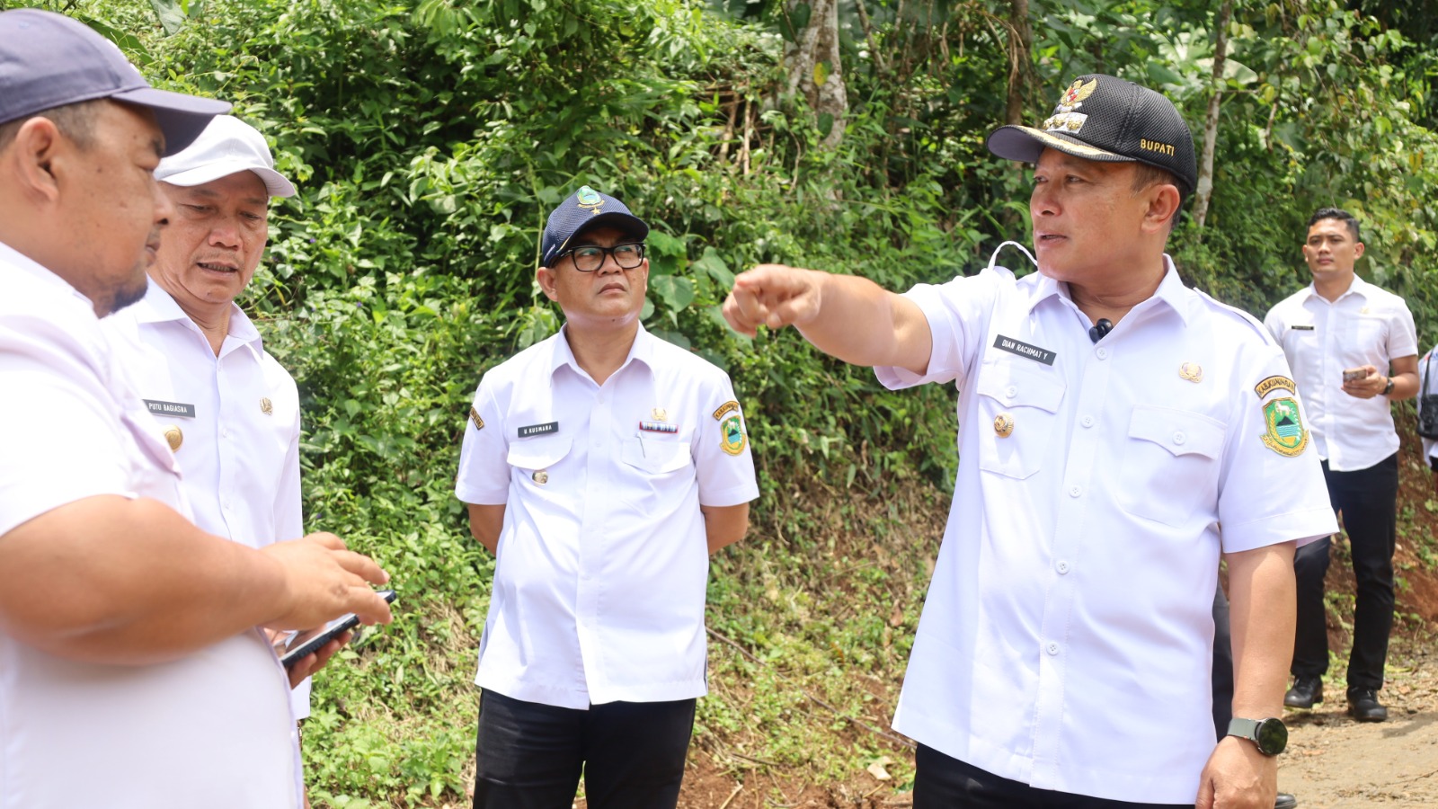 Dalam peninjauan ini, Bupati didampingi oleh Kepala Dinas Pekerjaan Umum dan Tata Ruang (DPUTR) Kabupaten Kuningan, Ir. Putu Bagiasna dan Kepala Bidang Bina Marga, Teddy Sukmajayadi. Turut juga hadir Kepala Disdikbud UU Kusmana, M.Si untuk meninjau sekolah SDN 1 Desa Cibinuang.
