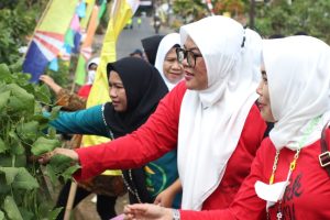 KUNINGAN-Tim Penggerak Pemberdayaan Kesejahteraan Keluarga (TP PKK) Kabupaten Kuningan mengelar sosialisasi pemberdayaan masyarakat dengan pemanfaatan lahan pekarangan sebagai sumber pangan keluarga, di Desa Cibeureum Kecamatan Cilimus, Rabu (10/8/2022). Sosialisasi ini dibuka oleh Ketua TP PKK Kuningan Hj. Ika Purnama.