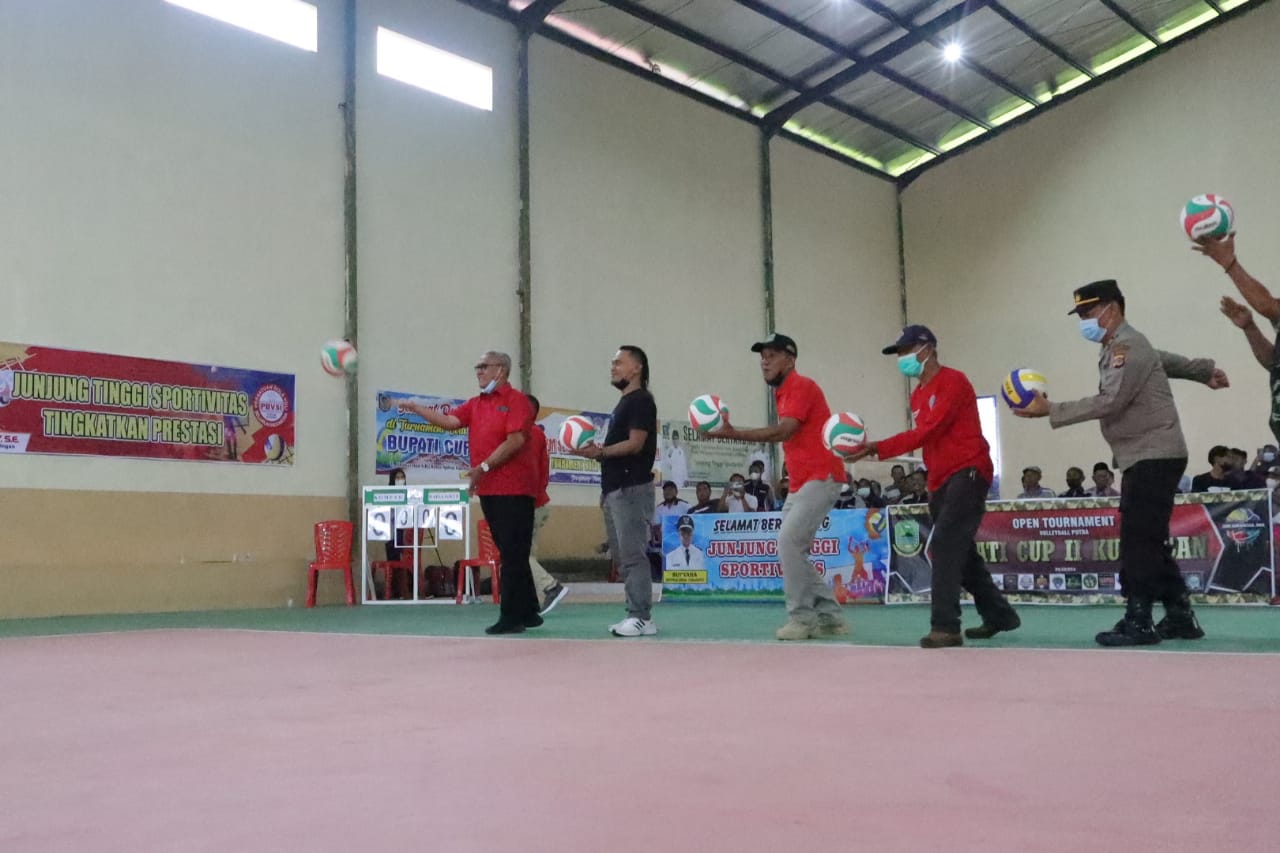 Bupati Kuningan H. Acep Purnama SH., MH secara resmi membuka turnamen Bola Voli Semi Open Bupati Cup 2 (dua) se-Kab.Kuningan, di Gor Surangga Jaya Desa Margasari Kecamatan Luragung, Sabtu (12/02/2022).