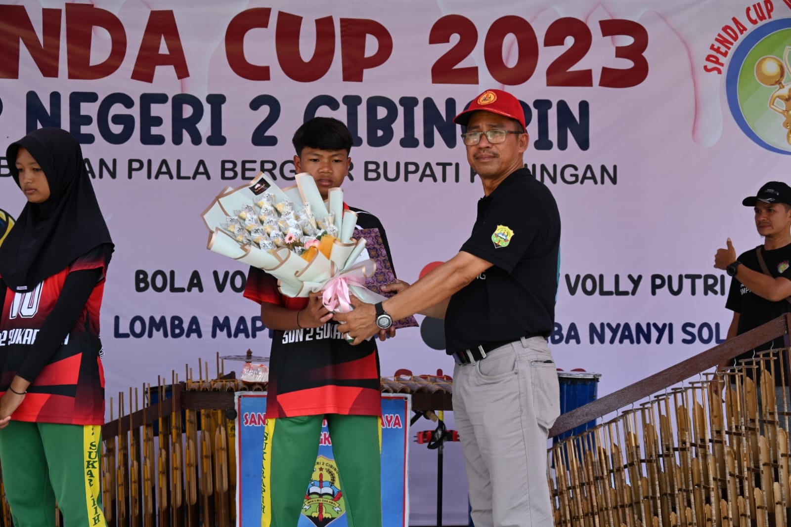 Dalam laporanya, Kepala Sekolah SMP 2 Cibingbin sekaligus sebagai ketua panitia, menghaturkan terima kasih kepada Wakil Bupati telah berkenan hadir dalam acara penutupan SPENDA CUP 2023, selama kurang lebih sepekan acara ini berlangsung, dengan kegiatan meliputi, pertandingan olah raga bola voly putra putri, lomba menyanyi solo serta lomba mata pelajaran.