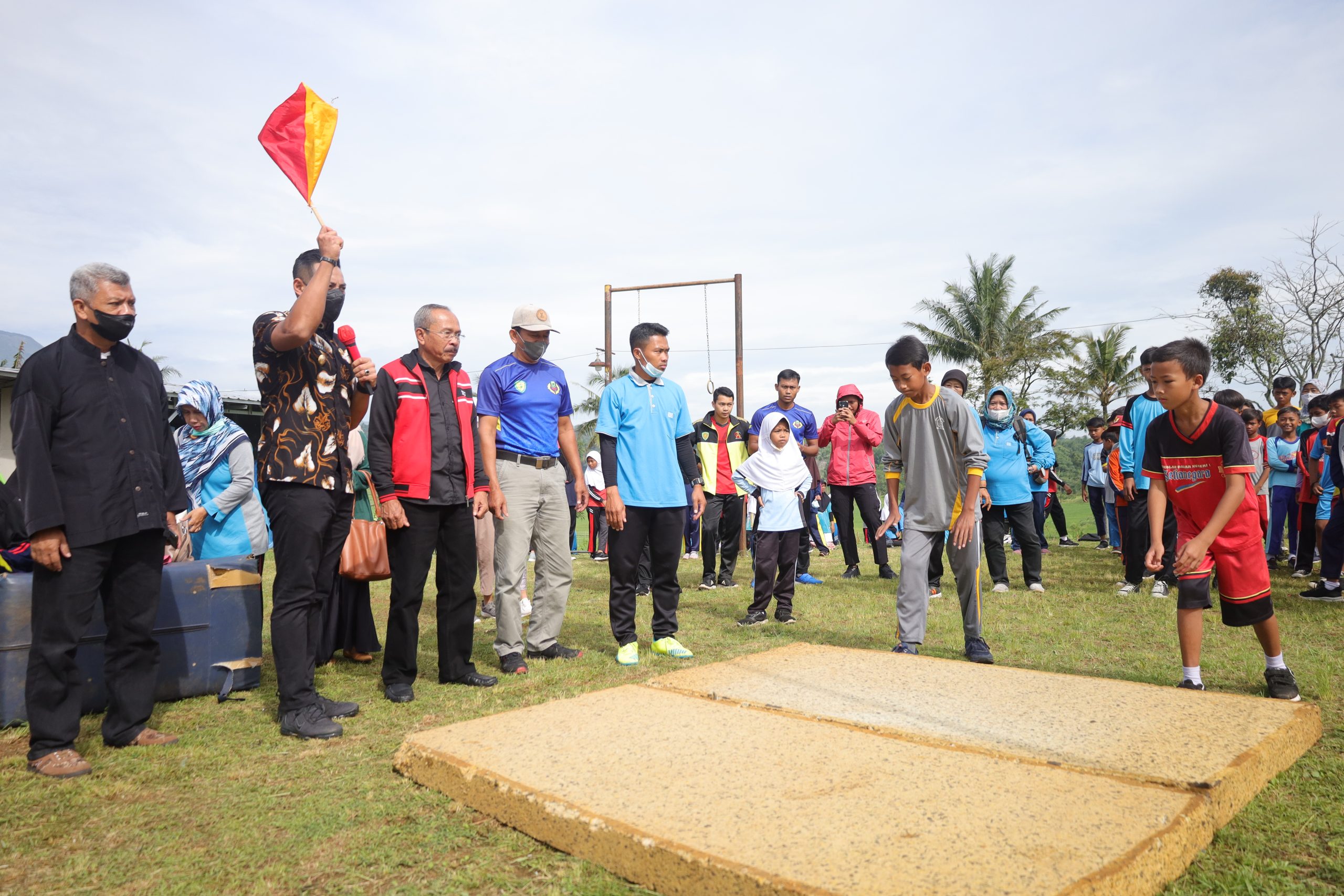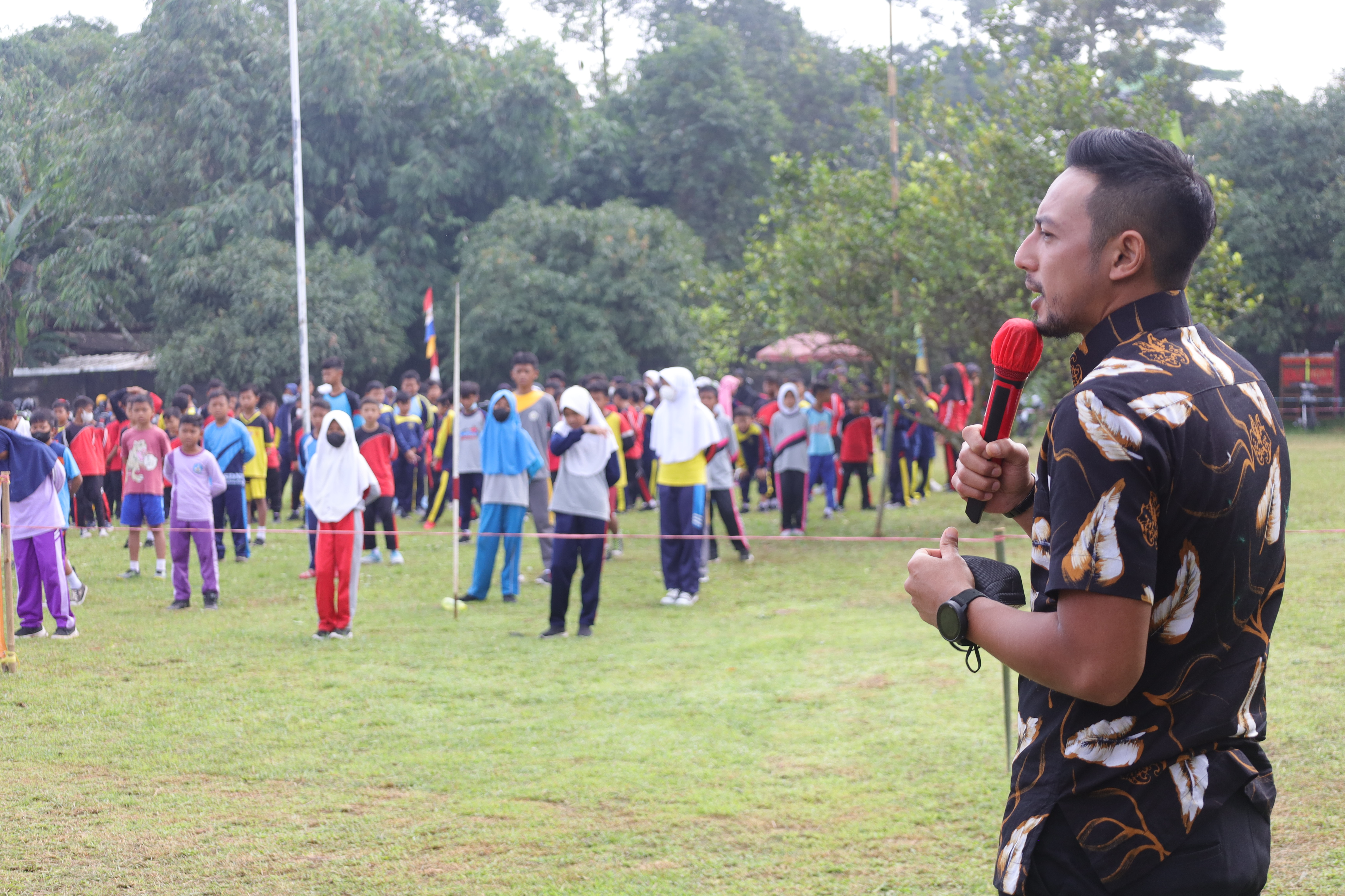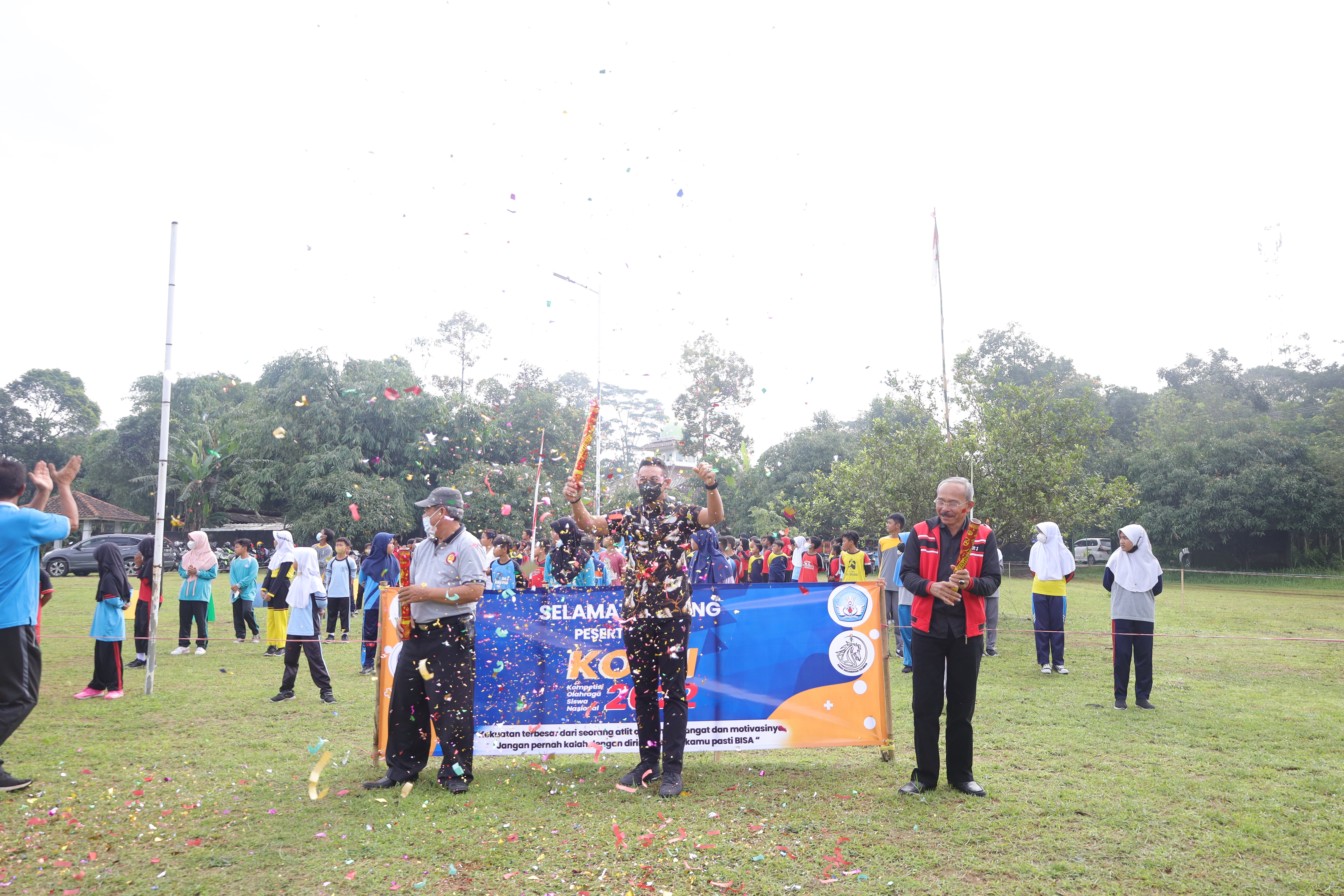 CILIMUS,- Wakil Bupati Kuningan H. M Ridho Suganda, SH., M.Si, menghadiri sekaligus membuka kegiatan Kompetisi Olahraga Siswa Nasional (KOSN) tingkat Sekolah Dasar se-Wilayah Kecamatan Cilimus, ditandai dengan menyalakan Confetty dan memulai salah satu cabang olahraga, Kamis (24/2/2022).