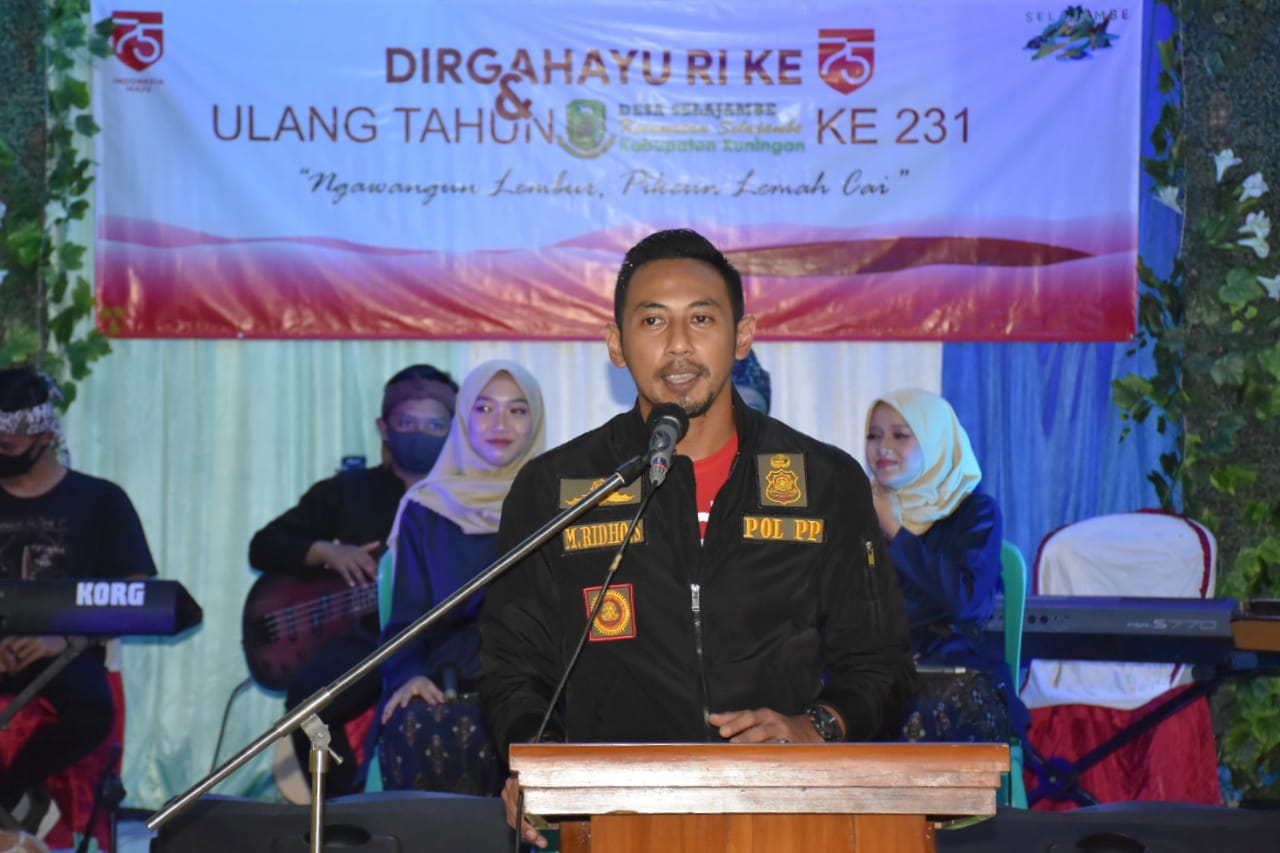SELAJAMBE,- Wakil Bupati Kuningan, H. M Ridho Suganda, SH., M.Si didampingi Istri, Hj. Yuana Ridho Suganda (Wakil Ketua TP PKK Kab.Kuningan) menghadiri peringatan Hari Jadi ke 231 Desa Selajambe, Kecamatan Selajambe, Minggu (23/8/2020) malam.