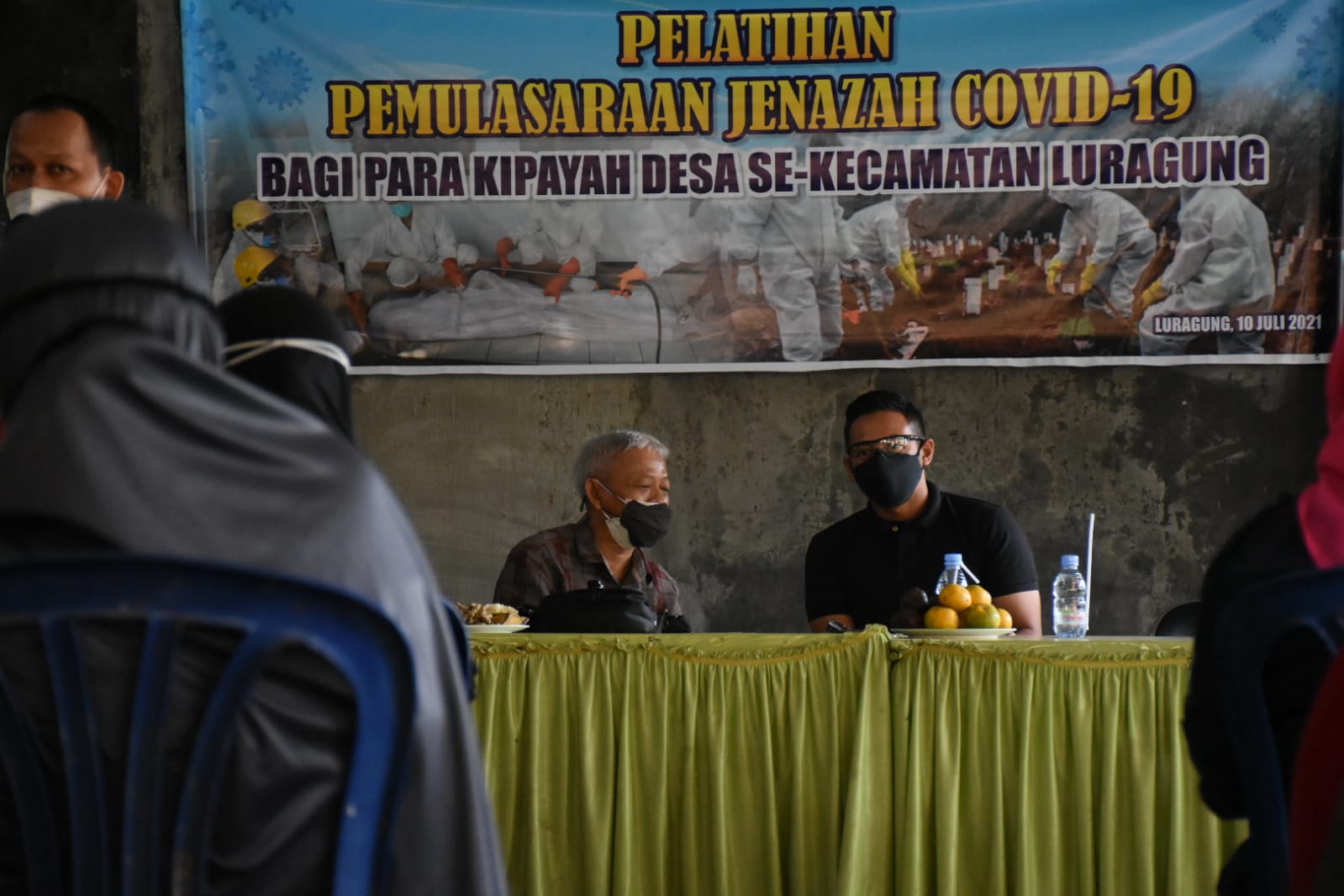LURAGUNG,- Terbatasnya pengetahuan petugas pemakaman bagi jenazah yang tepapar Covid-19, mendorong Pemerintahan Kecamatan Luragung menggelar Pelatihan Pemulasaran Jenazah Covid-19 Bagi Para Kifayah Desa se-Kecamatan Luragung, Sabtu (10/7/2021).