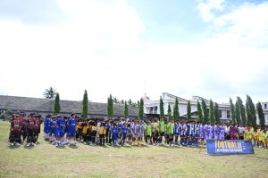 KUNINGAN – Wakil Bupati Kuningan Tuti Andriani menghadiri kegiatan Football Festival Antar Sekolah Sepak Bola (SBB) kategori usia 13 tahun dalam rangka Launching Sekolah Sepak Bola (SSB) HARATA, yang berlangsung di Lapangan Sepak Bola Desa Kertawangunan, pada Sabtu (25/10/2025).