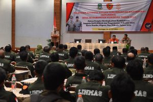 “Maka dari itu perlindungan masyarakat adalah suatu keadaan dinamis dimana warga masyarakat disiapkan dan dibekali pengetahuan serta keterampilan untuk melaksanakan kegiatan penanganan bencana guna mengurangi dan memperkecil akibat bencana, serta ikut memelihara keamanan, ketentraman dan ketertiban masyarakat, kegiatan sosial kemasyarakatan yang ada di desa dan kelurahan”, Ungkap Bupati.