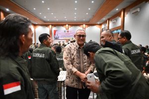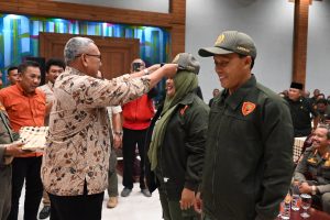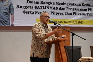 KUNINGAN-Dalam rangka meningkatkan kedisiplinan anggota Satuan Perlindungan Masyarakat (SATLINMAS) dan pengamanan Pemilihan Kepala Desa 2023, serta Pemilihan Umum Presiden dan Kepala Daerah Tahun 2024. Bupati Kuningan H. Acep Purnama, SH., MH memberikan arahan pada kegiatan pelatihan Anggota SATLINMAS Desa se-Kabupaten Kuningan Tahun 2023, yang diselenggarakan di Aula Montana Hotel Kuningan. Jum’at (14/7/2023).